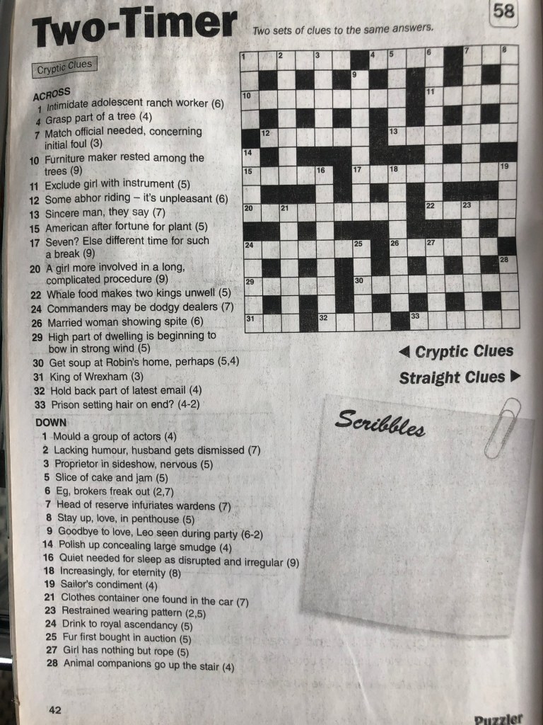 My daughter walks in with another book in her hand and I look at it slightly fearfully. I have the Bhagavad Gita, Guru pooja and Vishnu Sahasranamam. What is this going to be – the Mahabharata or Ramayana? “Here,” she says, “I thought you would like these”, and hands me the book and a small paper bag. “Mind you, no peeking at the back and no unfinished crosswords. You must finish one before you go to the next.” I glare at her, settle myself in bed and open the paper bag. I pop a bulls-eye in my mouth and turn the first page of the crossword book. “Unfinished crossword, indeed!” My white blood corpuscles begin to multiply.