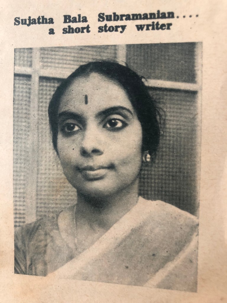 The author Sujatha Balasubramanian (1932-1984) was a prolific writer between 1955 right up to her early demise in 1984. She started writing at the age of nineteen. Her work ranges from tales of simple village folk to highly contemporary scenes.